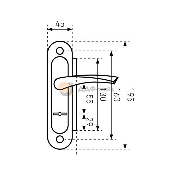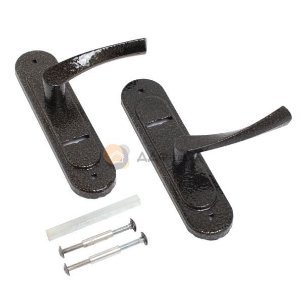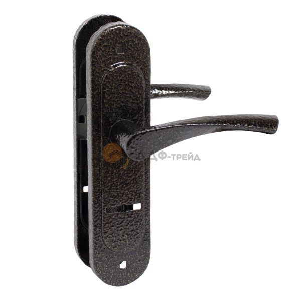 Ручка на планке для сувальдного замка с межосевым расстоянием 55мм. Материал ручки - алюминий, планки - сталь. Крепление - стяжки.