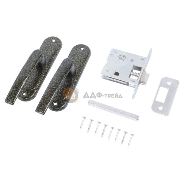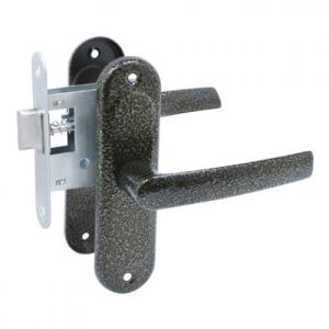 Защёлка с фалевыми ручками для установки на деревянные межкомнатные двери. Материал корпуса - сталь оцинкованная, материал защелки - цинковый сплав, ручек - алюминиевый сплав, сталь. Габариты корпуса - 70х60мм. Длина планки ручек - 150 мм, расстояние между крепежными отверстиями -125мм.