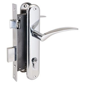 Серия "Классика". Замок врезной с ручками. Предназначен для установки в деревянные двери толщиной до 40мм, правого и левого открывания. Дверь может быть закрыта на защелку и открыта с помощью фалевой ручки при открытом засове замка. Прямоугольный ригель, вылет 20мм. Универсальная защелка. Стальной корпус с подшипником, покрыт полимерной краской. Межосевое расстояние 85 мм. Удаление ключевого отверстия 45мм. Материал ручек алюминиевый сплав. Комплектация: цилиндровый механизм 68мм, 6 ключей, ответная планка, винтовые стяжки.