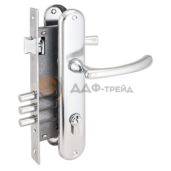 Серия "Классика". Замок врезной с ручками. Предназначен для установки в деревянные двери толщиной до 40мм, правого и левого открывания. Дверь может быть закрыта на защелку и открыта с помощью фалевой ручки при открытом засове замка. Три стальных ригеля круглого сечения диаметром 12мм, вылет 20мм. Универсальная защелка. Стальной корпус с подшипником, покрыт полимерной краской. Межосевое расстояние 85 мм. Удаление ключевого отверстия 45мм. Материал ручек алюминиевый сплав. Комплектация: цилиндровый механизм 68мм, 6 ключей, ответная планка, винтовые стяжки.