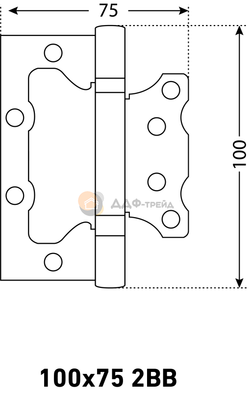 Петля дверная универсальная, без врезки. Предназначена для установки на левые и правые двери. Материал - сталь, гальваническое покрытие. Размер петли - 100х75х2,5 мм. 2 подшипника, плоский колпачок.