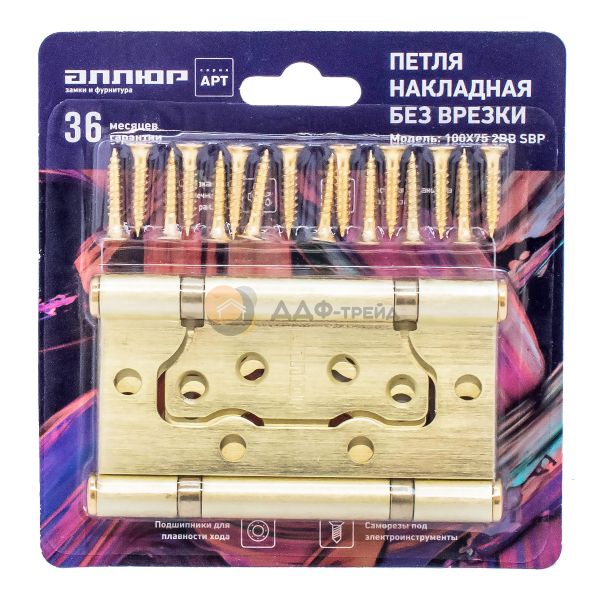 Петля дверная универсальная, без врезки. Предназначена для установки на левые и правые двери. Материал - сталь, гальваническое покрытие. Размер петли - 100х75х2,5 мм. 2 подшипника, плоский колпачок.