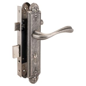 Серия «АРТ». Замок врезной с ручками. Предназначен для установки в деревянные двери толщиной от 30 до 40мм, правого и левого открывания. Дверь может быть закрыта на защелку и открыта с помощью фалевой ручки при открытом засове замка. Прямоугольный ригель, вылет 20мм. Универсальная защелка. Стальной корпус, покрытие - полимерная краска. Межосевое расстояние 70мм. Удаление ключевого отверстия 40мм. Материал ручек - сталь, алюминий. Гальваническое покрытие. Комплектация: цилиндровый механизм 60мм, материал ЦАМ/латунь, 5 ключей, ответная планка, винтовые стяжки.