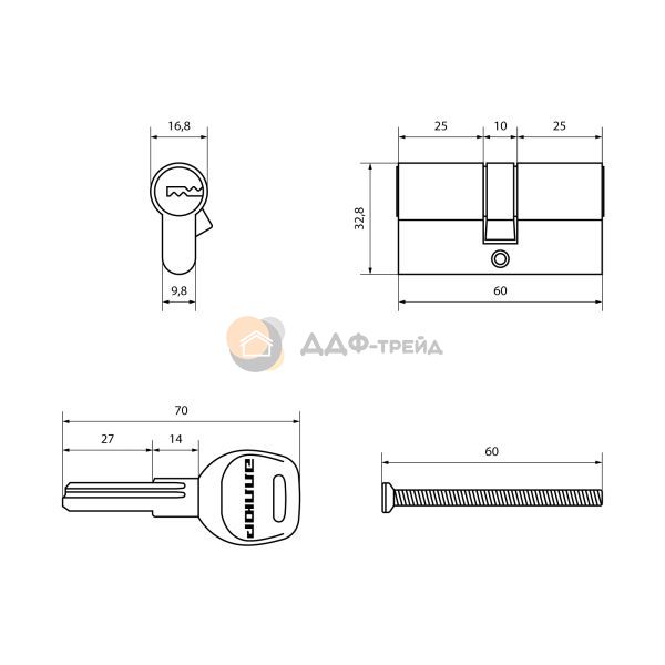Механизм цилиндровый для врезных замков с 6 пинами секретности. Европрофиль. Перфо-ключ. Материал корпуса и ротора – латунь. Ключ-латунный, с эргономичной пластиковой головкой. Ключ-ключ. Длина механизма - 60 мм (25х10х25 мм). 45000 секретных комбинаций ключа. Механизм защищен от высверливания, вскрытия бампингом и отмычками. Выступающий на 30 градусов из плоскости механизма кулачок защищает цилиндр от выбивания из двери. ПРИ УСТАНОВКЕ НЕ ИСПОЛЬЗОВАТЬ ЭЛЕКТРО ИНСТРУМЕНТ!