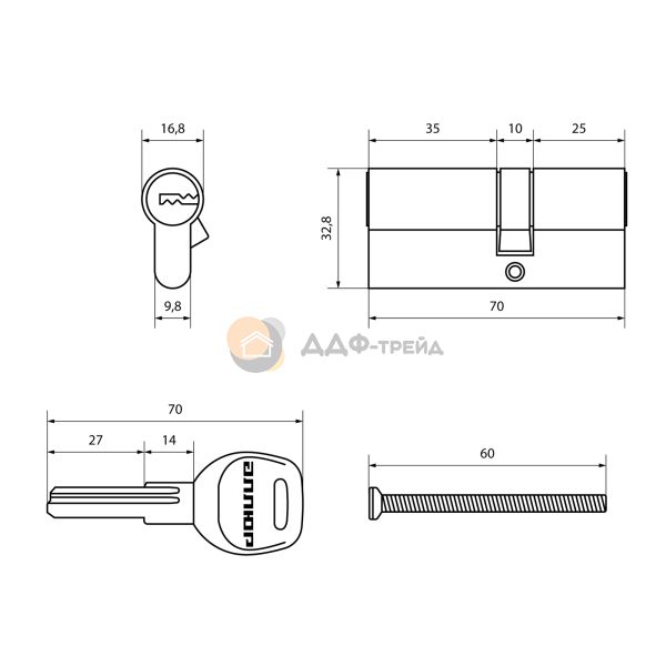 Механизм цилиндровый для врезных замков с 6 пинами секретности. Европрофиль. Перфо-ключ. Материал корпуса и ротора – латунь. Ключ-латунный, с эргономичной пластиковой головкой. Ключ-ключ. Длина механизма - 70 мм (25х10х35). 45000 секретных комбинаций ключа. Механизм защищен от высверливания, вскрытия бампингом и отмычками. Выступающий на 30 градусов из плоскости механизма кулачок защищает цилиндр от выбивания из двери. ПРИ УСТАНОВКЕ НЕ ИСПОЛЬЗОВАТЬ ЭЛЕКТРО ИНСТРУМЕНТ!