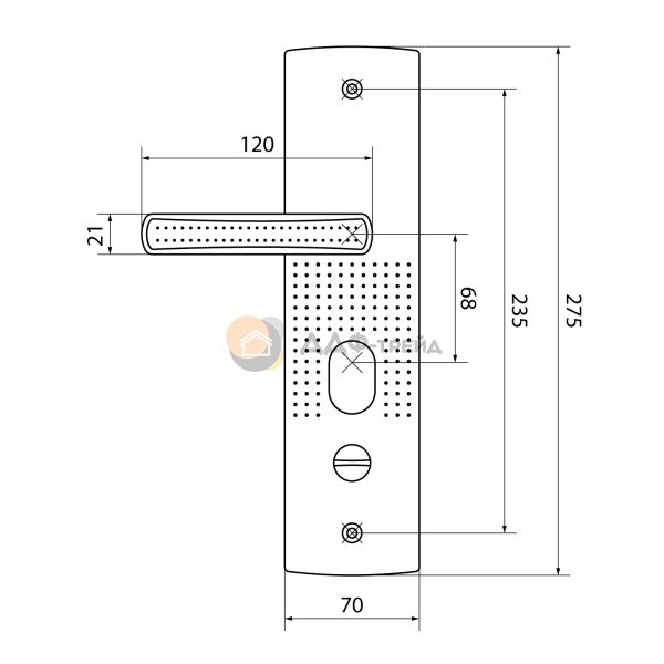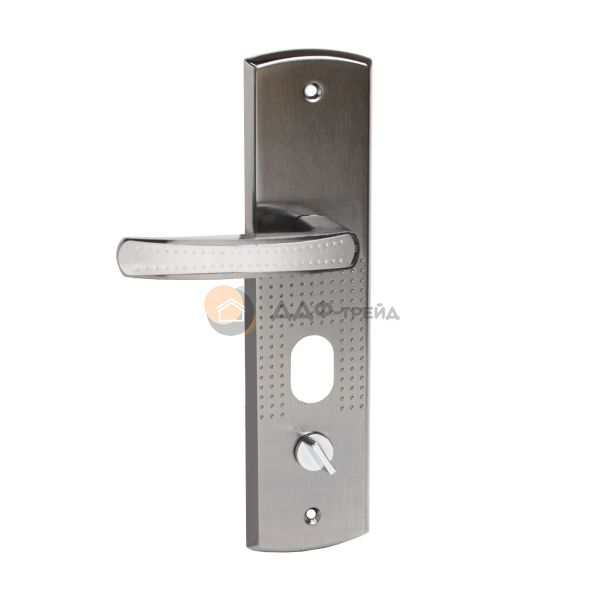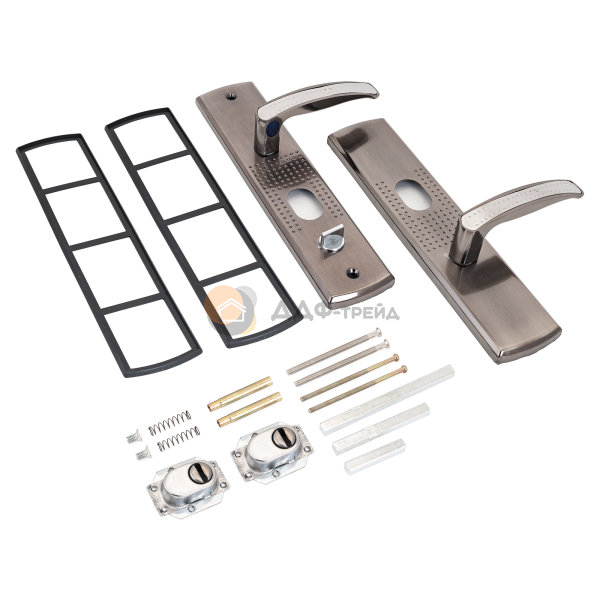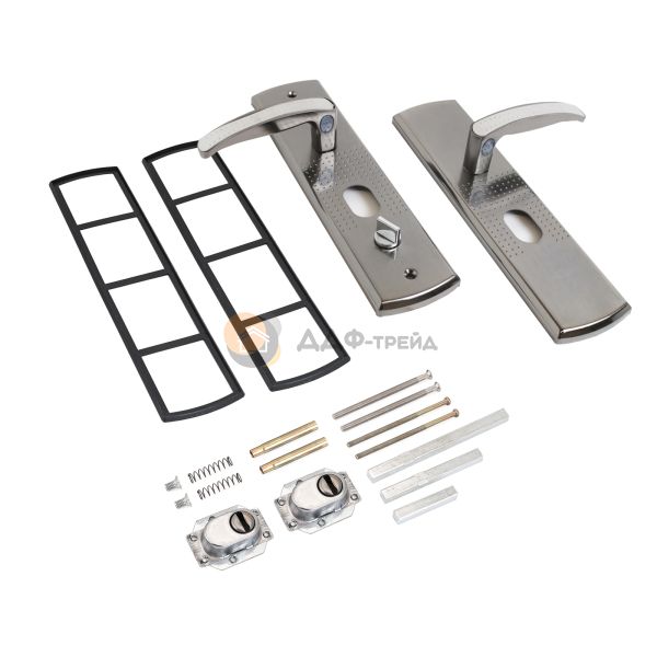 Ручка на планке под цилиндровый механизм. Предназначены для китайских металлических дверей, Подходят для замков автоматического и не автоматического закрывания. Материал - сталь, толщиной 1,1мм, гальваническое покрытие. Межосевое расстояние - 68 мм, размеры планки - 70х275 мм, длина/высота ручки - 120/21 мм соответственно. Цвет ручек и планки - никель. В комплект входят две ручки, винтовые стяжки, пластиковые прокладки и квадратный штырь (8х8 мм) 110 мм,комплекты стержней для автоматических и не автоматических замков. На наружней ручке имеется подсветка замочной скважины.