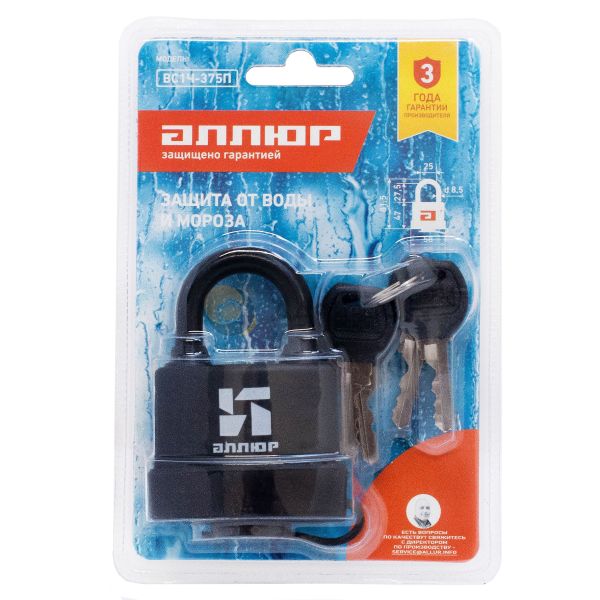 Серия замков «ПРЕСТИЖ». Замок навесной, всепогодный, с увеличенным количеством ключей. Автоматическое закрывание. Материал корпуса - высокопрочный чугун. Корпус замка и цилиндровый механизм имеют защитный пластиковый кожух. Размеры корпуса - 58ммх47мм, диаметр дужки - 8,5мм. Цилиндровый механизм секрета, 6 английских ключей с пластиковой головкой.