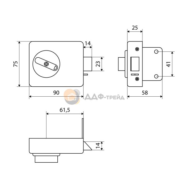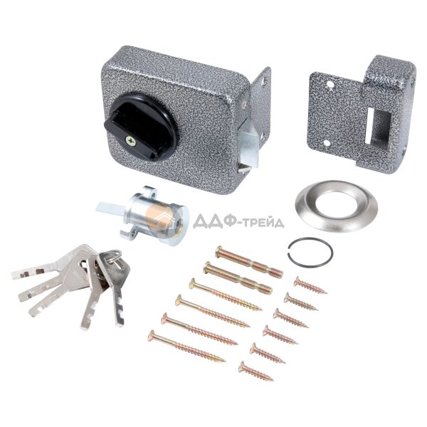Замок накладной цилиндровый с вертушкой автоматического запирания. Предназначен для установки на деревянные двери. Засов-защелка прямоугольного сечения с максимальным вылетом 22 мм. Удаление ключевого отверстия - 60 мм. Габариты замка - 90х73х25 мм. Комплектация - 5 ключей, запорная планка, накладка. Механизм замка - дисковый, идет раздельно с корпусом. Закрывание и открывание замка изнутри производится вертушкой, снаружи ключом. Совпадает по посадочным размерам с замком ЗНД2А/ШО40.