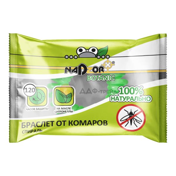 Браслет в виде спиральной резинки. Основной материал – EVA. Предназначен для защиты взрослых и детей (с 3 лет) от нападения комаров. Материал, из которого состоит браслет, пропитан натуральным маслом цитронеллы. Аромат цитронеллы обладает мощным отпугивающим эффектом, забивает рецепторы насекомых. Защищает не менее 120 часов. В промежутках между использованием, браслет необходимо хранить в заводской герметичной упаковке. Браслеты поставляются в цветном шоу-боксе.