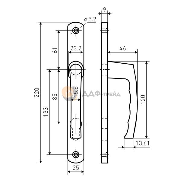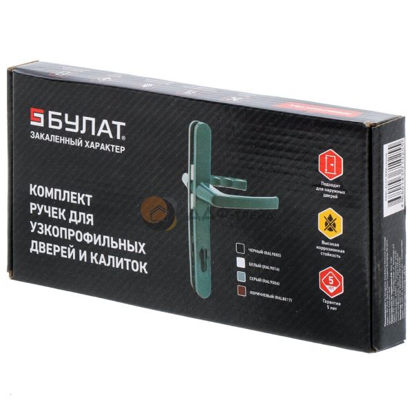 Нажимные гарнитуры предназначены для установки на алюминиевые, пластиковые, стальные и деревянные двери. Крепление на двери - сквозное винтовое. Толщина профиля 67-76 мм. Совместимы с замками KALE, KFV, GU и другими. Покрытие - ППМ по каталогу RAL. Нажимной гарнитур подпружиненный с межосевым расстоянием 85 мм с планкой 25 мм.