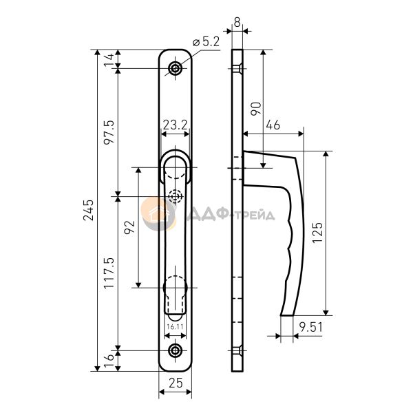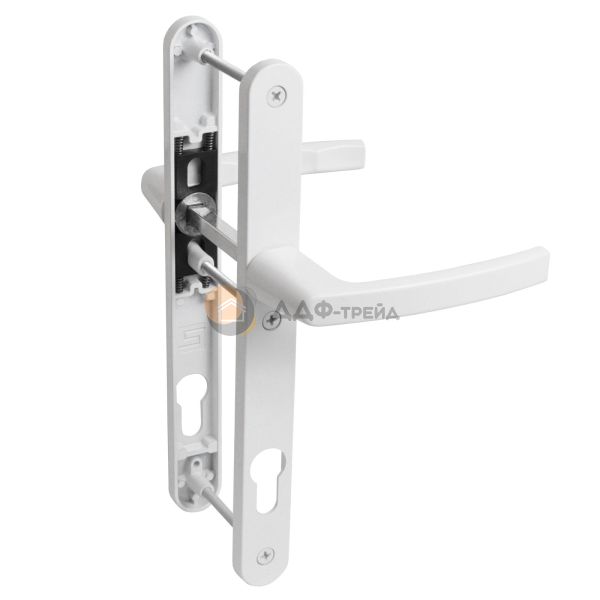 Нажимные гарнитуры предназначены для установки на алюминиевые, пластиковые, стальные и деревянные двери. Крепление на двери - сквозное винтовое. Толщина профиля 67-76 мм. Совместимы с замками KALE, KFV, GU и другими. Покрытие - ППМ по каталогу RAL. Нажимной гарнитур подпружиненный с межосевым расстоянием 92 мм с планкой 25 мм.