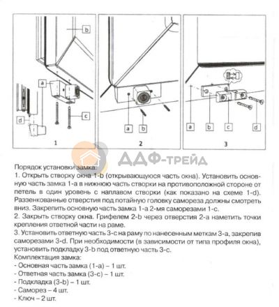 Блокирующий замок в комплекте к каждому замку идёт 2 фирменных ключа (один ключ подходит для всех замков), четыре самореза с буром, грифель для разметки, инструкция по монтажу.