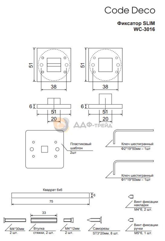 Накладки под евроцилиндр, фиксаторы для защелок на тонком квадратном основании. Рекомендации по использованию с другими товарами (приобретаются отдельно): - ручки дверные Code Deco 30 серия Slim; - замки под евроцилиндр и цилиндровый механизм; - защелки под фиксатор.