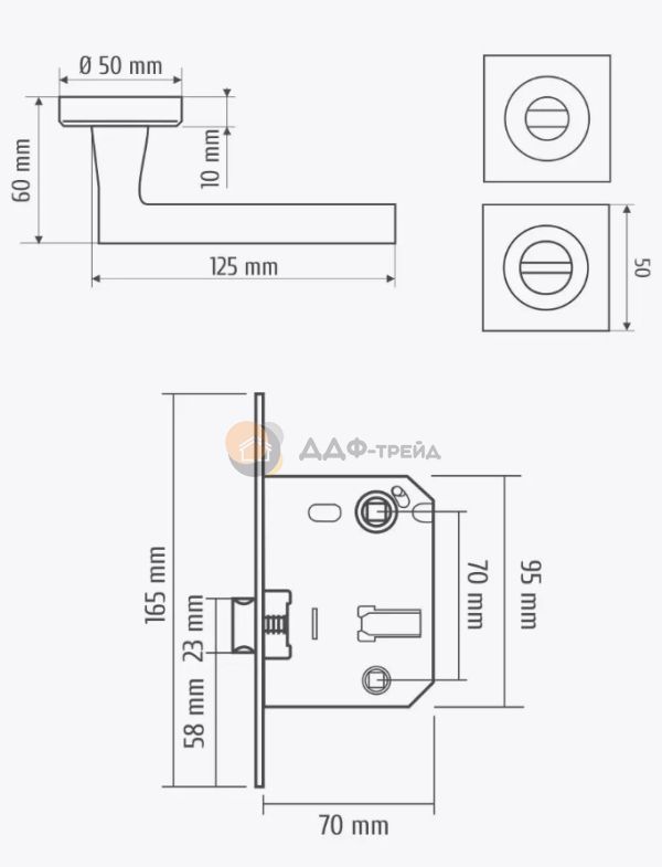 Вся комплектация, необходимая для установки на дверь, в одной упаковке (ручка, замковый механизм L70+завертка)! Покрытие ручки устойчиво к повышенной влажности, перепаду температур и солнечному свету. Срок службы: не менее 5 лет.