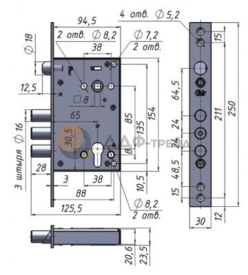 Замки серии "АССИСТЕНТ" предназначены для установки на металлические и противопожарные двери. Бэксет равен 65 мм (расстояние от наружной планки до центра отверстия под цилиндровый механизм замка или до центра оси ручек). Все замки снабжены засовом состоящим из 3-х штырей 15,8мм. Вылет засова составляет 26мм. Угол поворота ручки привода защелок через шток квадратного сечения 8х8 мм составляет 32град.
