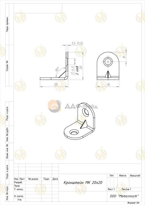 Купить Кронштейн МК 20*20 цинк (компл. 10 шт) оптом
