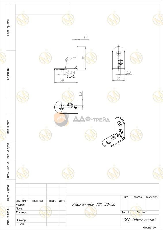 Купить Кронштейн МК 30*30 цинк (компл. 10 шт) оптом