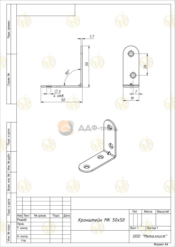 Кронштейн МК 50*50 цинк (компл. 10 шт)