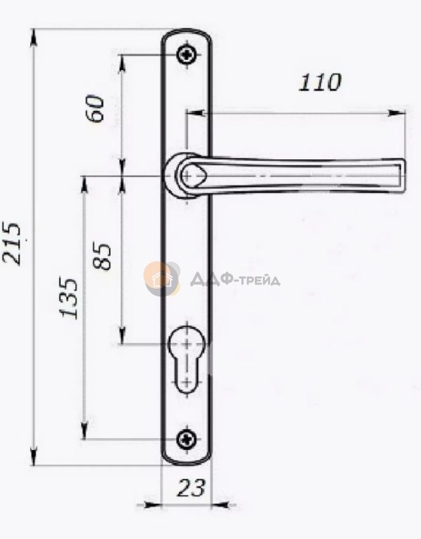 Ручка на планке под евроцилиндр для узкопрофильных дверей из ПВХ-профиля. Устанавливаются совместно с замками для узкопрофильных дверей с межосевым расстоянием 85мм. Материал: промышленный алюминиевый сплав ADC 12. Полимерное покрытие по RAL: W -9016 Толщина профиля от 45мм до 75мм.