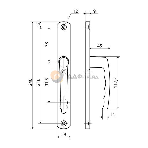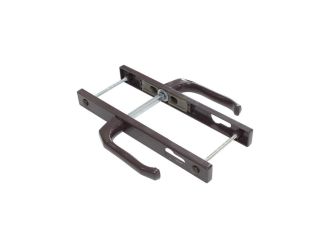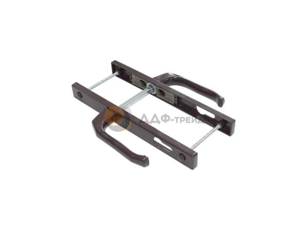 Изготовлен из сплавов алюминия и цинка, окрашен полимерно-порошковым покрытием. Отдельные детали из полиамида и полипропилена. Благодаря применению в соединяемых деталях вставки из полипропилена обеспечивается легкость вращения ручки и исключается износ металлических деталей. Крепление к створке осуществляется с помощью трех укорачиваемых винтов. При этом, общий штифт поворотных ручек проходит через весь механизм замка. Ручки являются универсальными и подходят на профильные системы различной конфигурации и толщины, поэтому, при установке может потребоваться укорачивание винтов и штифта. Основным отличием гарнитура данной модели является наличие пружинного механизма, который позволяет усилить возвратный эффект откидного механизма замка-рейки и исключает возможность провисания ручки.