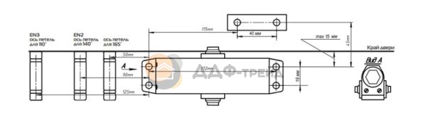 Доводчик дверной, механо-гидравлический, двухскоростной. Техническая информация: Вес дверного полотна - 60 кг. Ширина дверного полотна до 900 мм. Тип установки - универсальный, для левых и правых дверей. Тип рычага - cкладной рычаг. Рабочая температура (-35/+60 °С). Посадочные размеры - 132х19 мм. Усилие EN - EN2, EN3. Ресурс, циклы “открывание-закрывание”не менее 500 000 Гарантия - 1 год при условии соблюдения правил установки, настройки и эксплуатации доводчика. Функции доводчиков: Скорость “Закрывания” - да. Скорость “Доводки” - да.