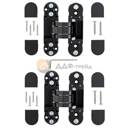 Универсальные врезные петли скрытой установки для левых и правых дверей. Работоспособность: 500 000 циклов. Регулируется в трёх плоскоскстях. Модели 115*23,110*30 Нагрузка до 40 кг на две петли, до 60 кг на три петли. Максимальная ширина дверного плотна - 850 мм.