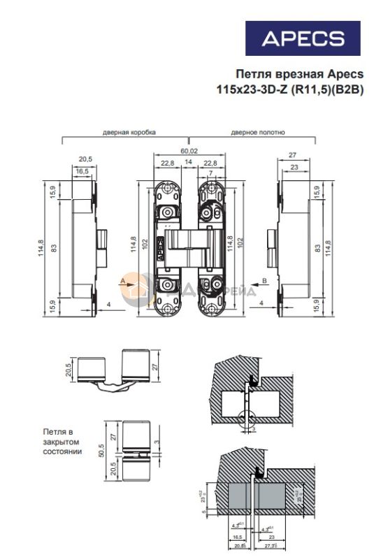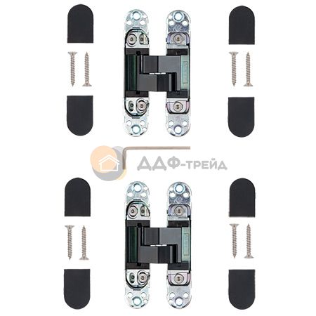 Универсальные врезные петли скрытой установки для левых и правых дверей. Работоспособность: 500 000 циклов. Регулируется в трёх плоскоскстях. Модели 115*23,110*30 Нагрузка до 40 кг на две петли, до 60 кг на три петли. Максимальная ширина дверного плотна - 850 мм.