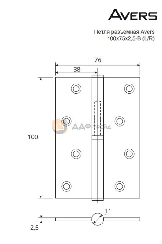 Разъемные врезные петли Avers из стали для деревянных межкомнатных дверей. Петли укомплектованы подшипником скольжения, обеспечивающим плавность хода. Закаленные саморезы позволяют использовать электроинструмент при установке.