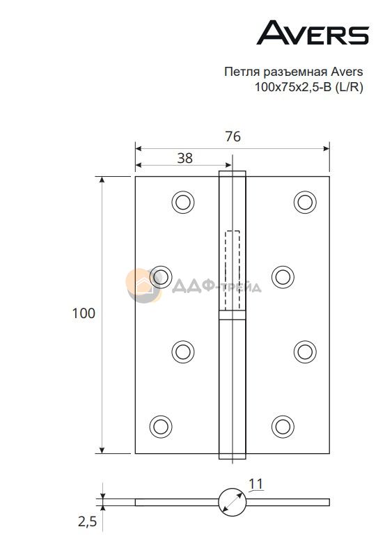 Купить Петля врезная Avers 100*75*2,5-B-G-R оптом