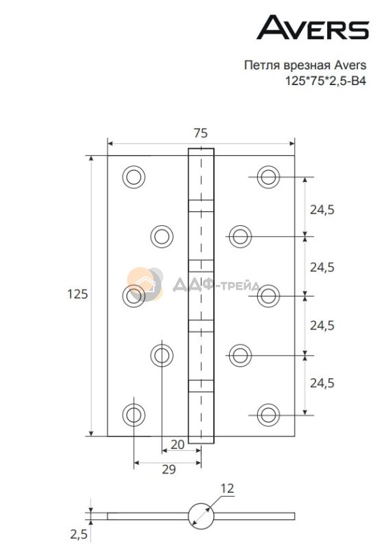 Универсальные врезные петли Avers из стали для деревянных дверей и окон. Петли размером от 75*60 и выше комплектуются подшипниками скольжения, которые обеспечивают плавность хода. Закаленные саморезы позволяют использовать электроинструмент при установке.