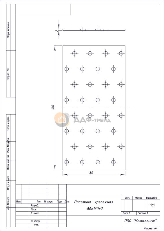 пластина крепёжная 80*160 цинк (40) РФ