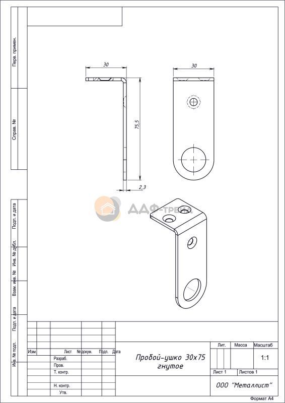 Купить Пробой-ушко гнутое 30*75 цинк (компл. 10 шт) оптом