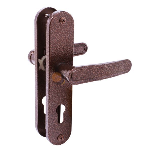 Ручка на планке для замка с межосевым расстоянием 68мм. Материал ручки - алюминий, планки - сталь. Крепление - стяжки. Подходят для китайских металлических дверей НТО Луч, Карат, Агат