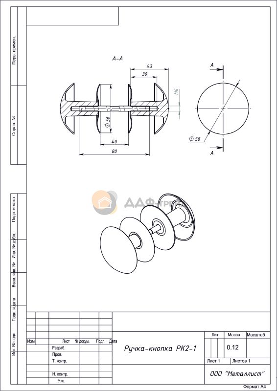ручка-кнопка РК2-1 (алюминий) пол.медь (25)