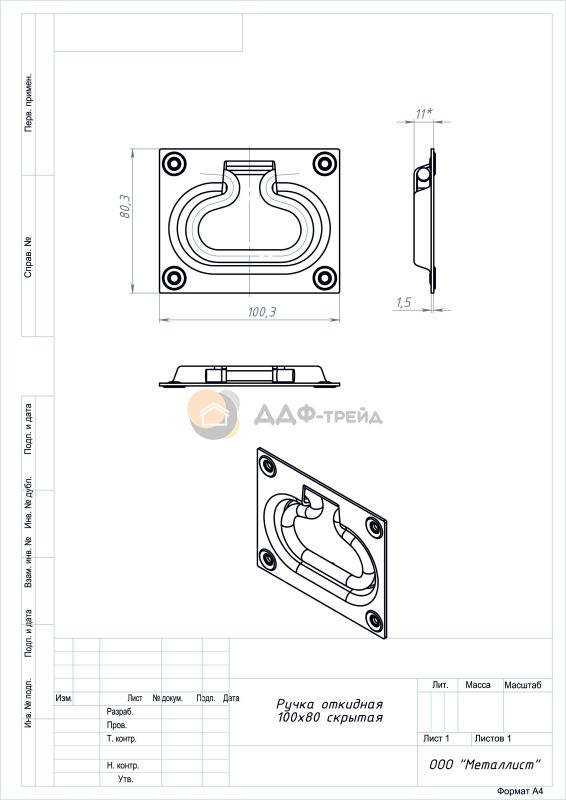 Ручка откидная 100*80 (скрытая) цинк (50) РФ