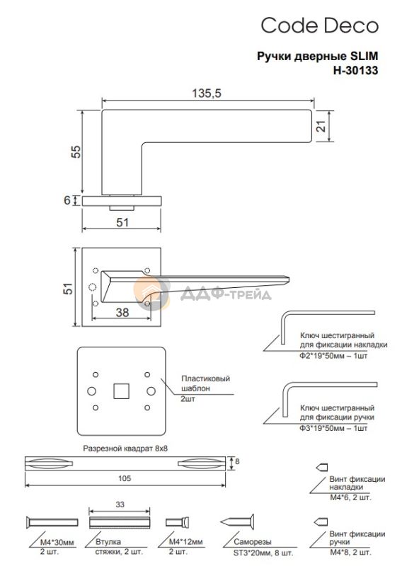 Ручки Code Deco 30 серия Slim - алюминиевые ручки на тонком квадратном основании для межкомнатных дверей.