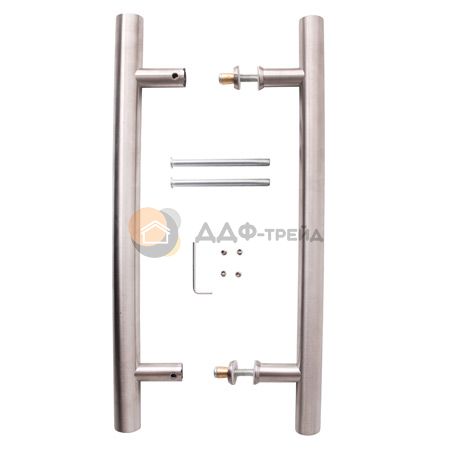 Ручки-скобы из нержавеющей стали на двери внутри общественных помещений. Устанавливаются как на металлические, так и на двери из стекла, ПВХ и алюминиевого профиля.Рекомендованная толщина двери: 9 - 70 мм.Комплектность: 1 пара.