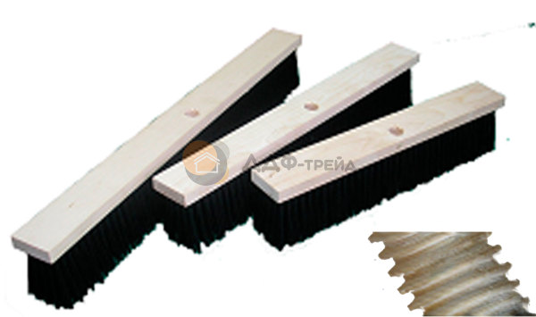 Жесткая щетина из полипропилена: легко справляется с прилипшей грязью, листьями, песком, мелким строительным мусором и снегом. Устойчива к влаге и истиранию.