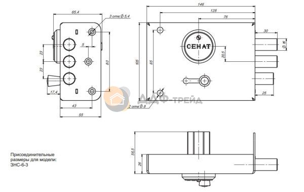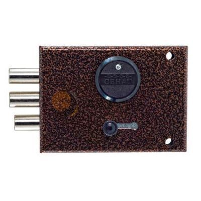 Замок накладной сувальдный с задвижкой. Предназначен для установки на металлические двери. Засов из трех цилиндрических ригелей диаметром 16 мм, с максимальным вылетом 30 мм. Удаление ключевого отверстия - 76 мм. Количество полуоборотов ключа - 4. Габариты замка - 146х105х26 мм. С внутренней стороны замок может закрываться на задвижку. Защита от вскрытия замка отмычкой, защита от высверливания стойки ригеля и защита от вскрытия методом проворота.