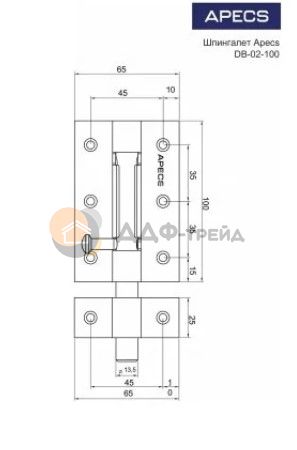 Шпингалет APECS DB-02-100-CR 11521 представляет собой дверной горизонтальный шпингалет-засов с ответной частью.