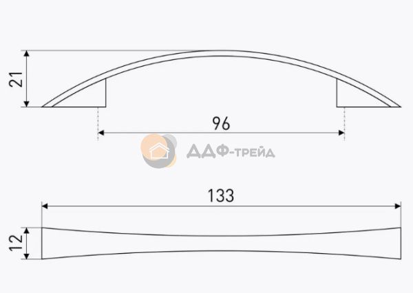 Ручка-скоба мебельная. Цвет - хром Материал: ЦАМ Размер изделия: 133х21х12 мм Рассояние между креплениями: 96 мм В комплекте 2 винта М4х22 мм