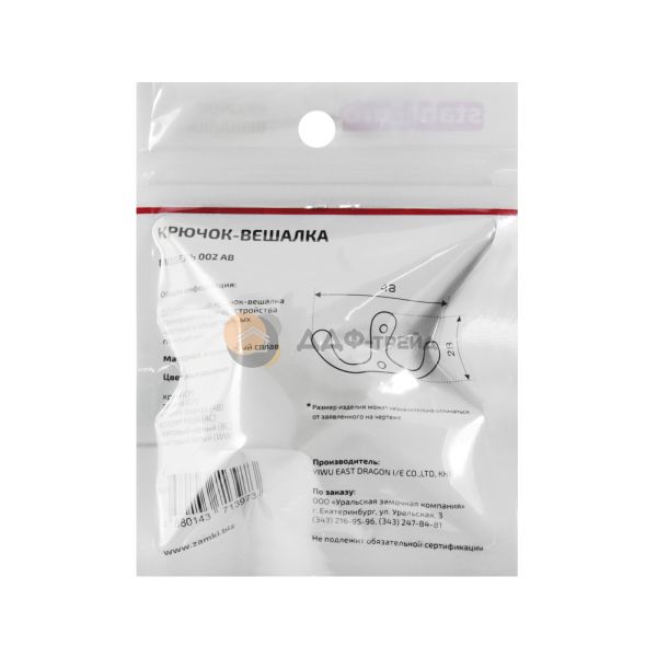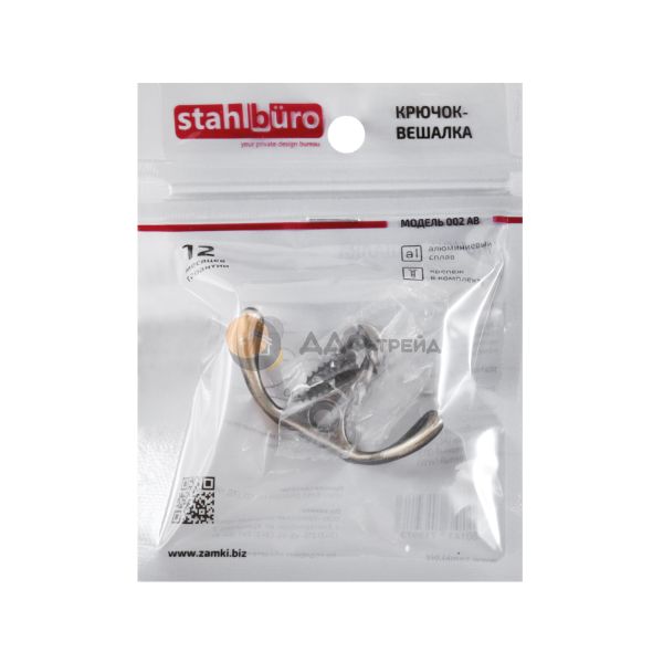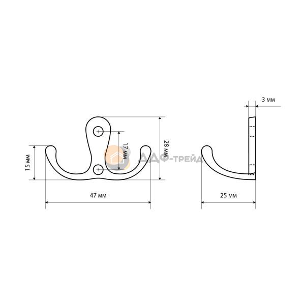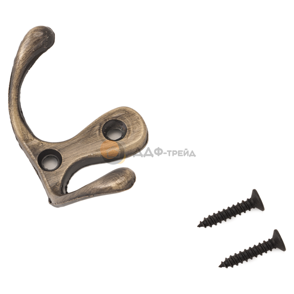 Крючок-вешалка двухрожковый. Материал - алюминиевый сплав. Крепеж в комплекте.