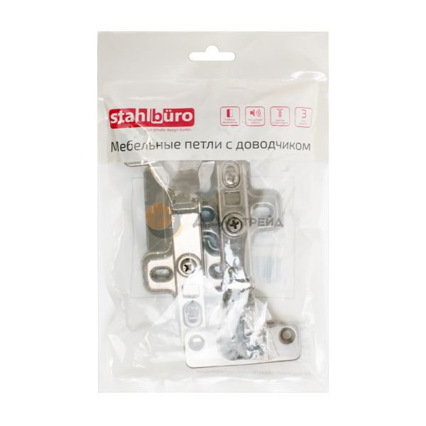 Петля 1111 это вкладная одноходовая мебельная петля с доводчиком, открыванием в 95° и углом установки 90°. Она обеспечивает плавное и мягкое открывание/закрывание фасада одним движением. В комбинации с планкой под саморезы (идущей в комплекте), петля 1111 надежно устанавливается на деревянные фасады. Модель обладает простым методом монтажа Clip-on: для фиксации достаточно простого нажатия пальцем на корпус петли.