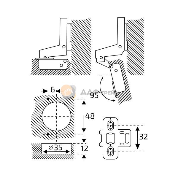 Петля 1111 это вкладная одноходовая мебельная петля с доводчиком, открыванием в 95° и углом установки 90°. Она обеспечивает плавное и мягкое открывание/закрывание фасада одним движением. В комбинации с планкой под саморезы (идущей в комплекте), петля 1111 надежно устанавливается на деревянные фасады. Модель обладает простым методом монтажа Clip-on: для фиксации достаточно простого нажатия пальцем на корпус петли.