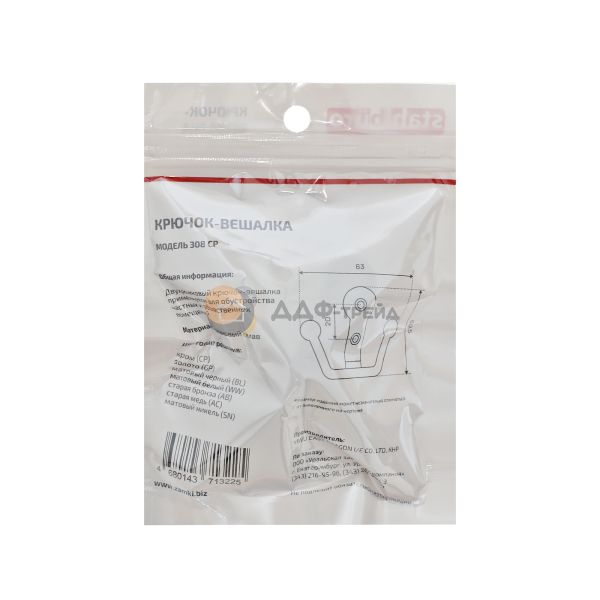 Материал - ЦАМЦвет - ХромГарантия - 3 годаОсновное свойство - Аллюр-МИТранспортная упаковка - 1Вес (брутто) - 0.036Индивидуальная упаковка - Пакет