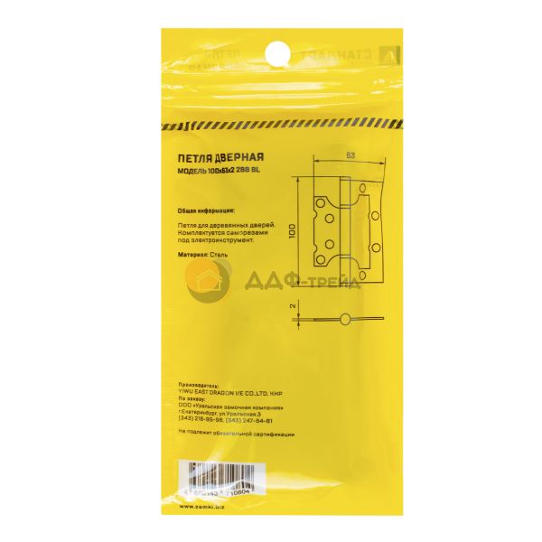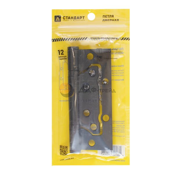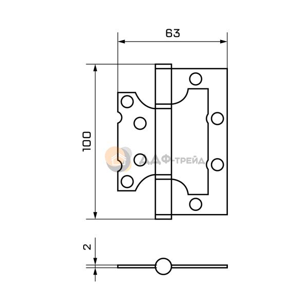 Петля дверная универсальная, без врезки. Предназначена для установки на левые и правые двери. Материал - сталь, гальваническое покрытие. Размер петли - 100х63х2 мм. 2 противоскрипных кольца, плоский колпачок. Упаковка - европакет.