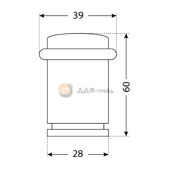 Ограничитель/упор дверной напольный. Материал - сплав ЦАМ, гальваническое покрытие. Цилиндрическая форма. Высота упора - 60мм, диаметр - 29мм. Шуруп в комплекте.