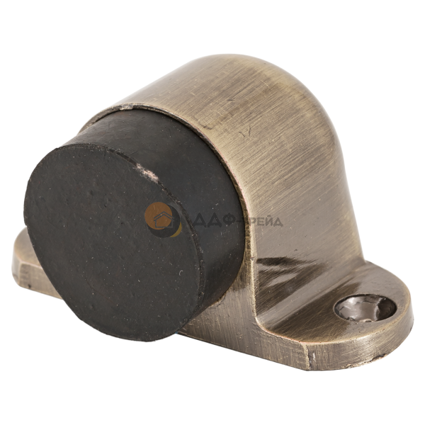 Ограничитель/упор дверной напольный. Материал - сплав ЦАМ, гальваническое покрытие, материал накладки - ударопрочный пластик. Имеет форму пушки. Ширина основания - 52мм.Шурупы в комплекте.