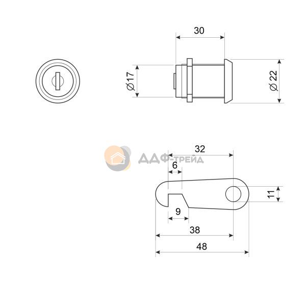 Замок врезной, почтовый. Секрет рамочный, ригель из листового проката имеет на конце крюк. Длина врезной части 30мм, диаметр 17мм. Комплектуется 2я стальными ключами. Удобен в установке, т.к поставляется уже в сборе.