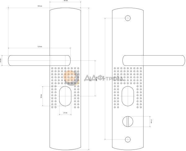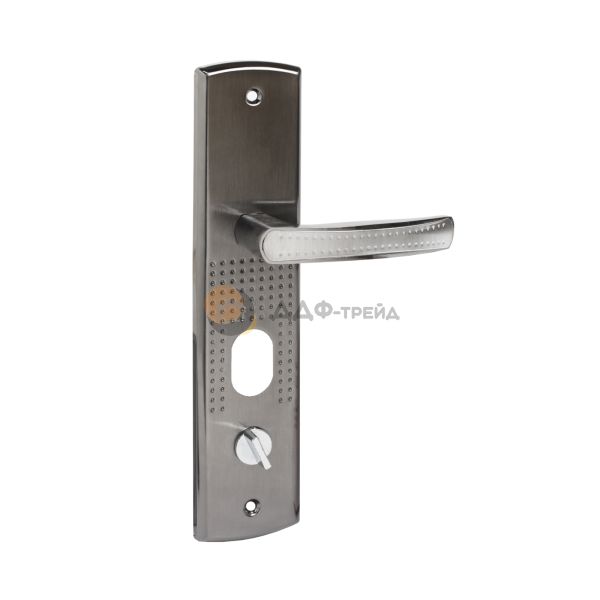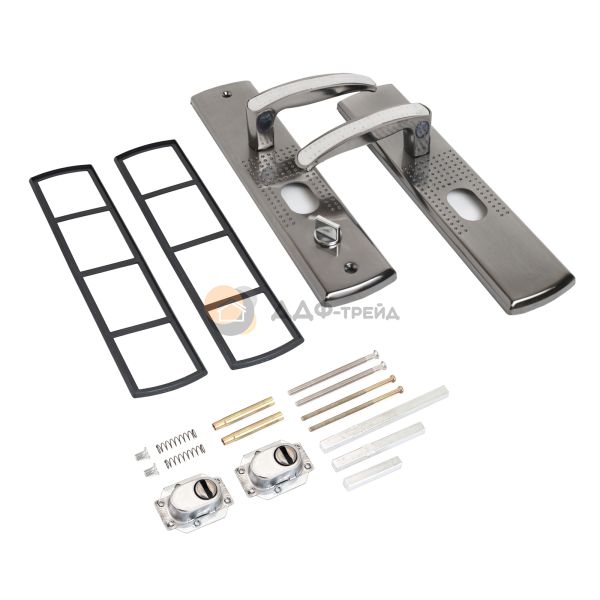 Ручка на планке под цилиндровый механизм. Предназначены для китайских металлических дверей, Подходят для замков автоматического и не автоматического закрывания. Материал планки - сталь, толщиной 1мм, гальваническое покрытие. Межосевое расстояние - 68 мм, размеры планки - 60х275 мм, длина/высота ручки - 120/21 мм соответственно. Цвет ручек и планки - никель. В комплект входят две ручки, винтовые стяжки, пластиковые прокладки и квадратный штырь (8х8 мм) 110 мм,комплекты стержней для автоматических и не автоматических замков. На наружней ручке имеется подсветка замочной скважины.